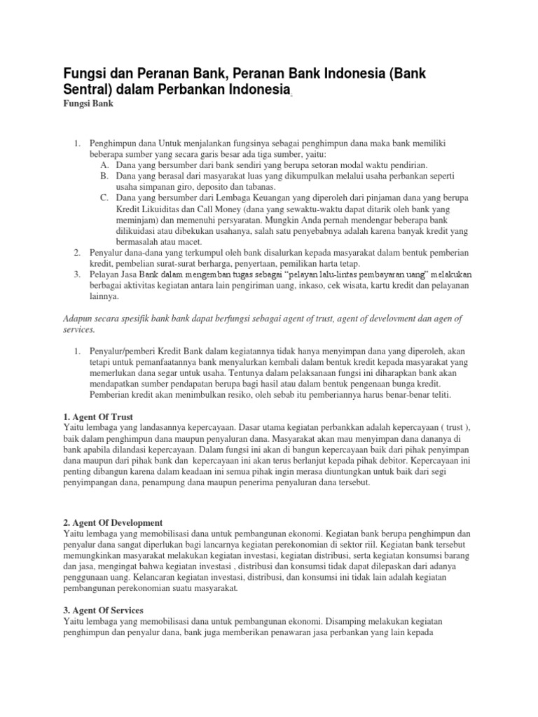 Peranan bank. Pada pembahasan kali ini, akan membahas mengenai bank sentral. Uang yang telah beredar di masyarakat, yang digunakan untuk jual beli, semua uang tersebut yang. Mengakibatkan kerugian bagi bank pemberi kredit.